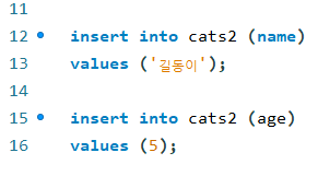 테이블을 만들때 NN(Not Nul)을 체크하면 null값이 허용되지 않는다